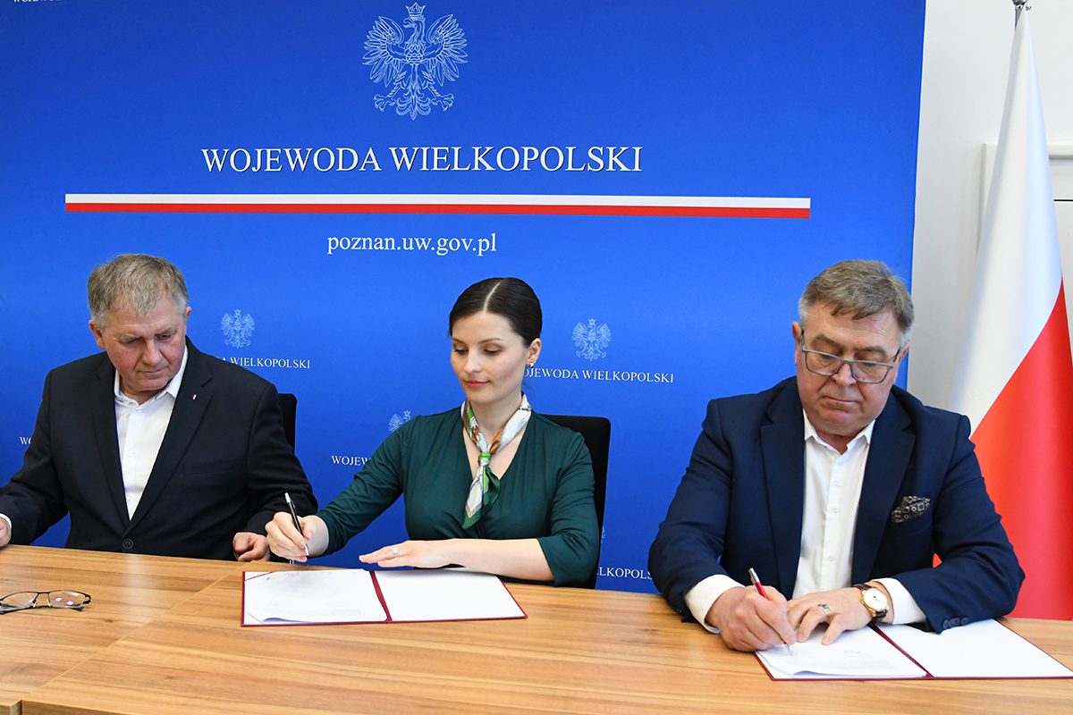 Starosta Jan Grabkowski oraz wicestarosta Tomasz Łubiński podpisali z wojewodą Agatą Sobczyk umowę o dofinansowanie rozbudowy drogi powiatowej Biskupice – Jankowo.